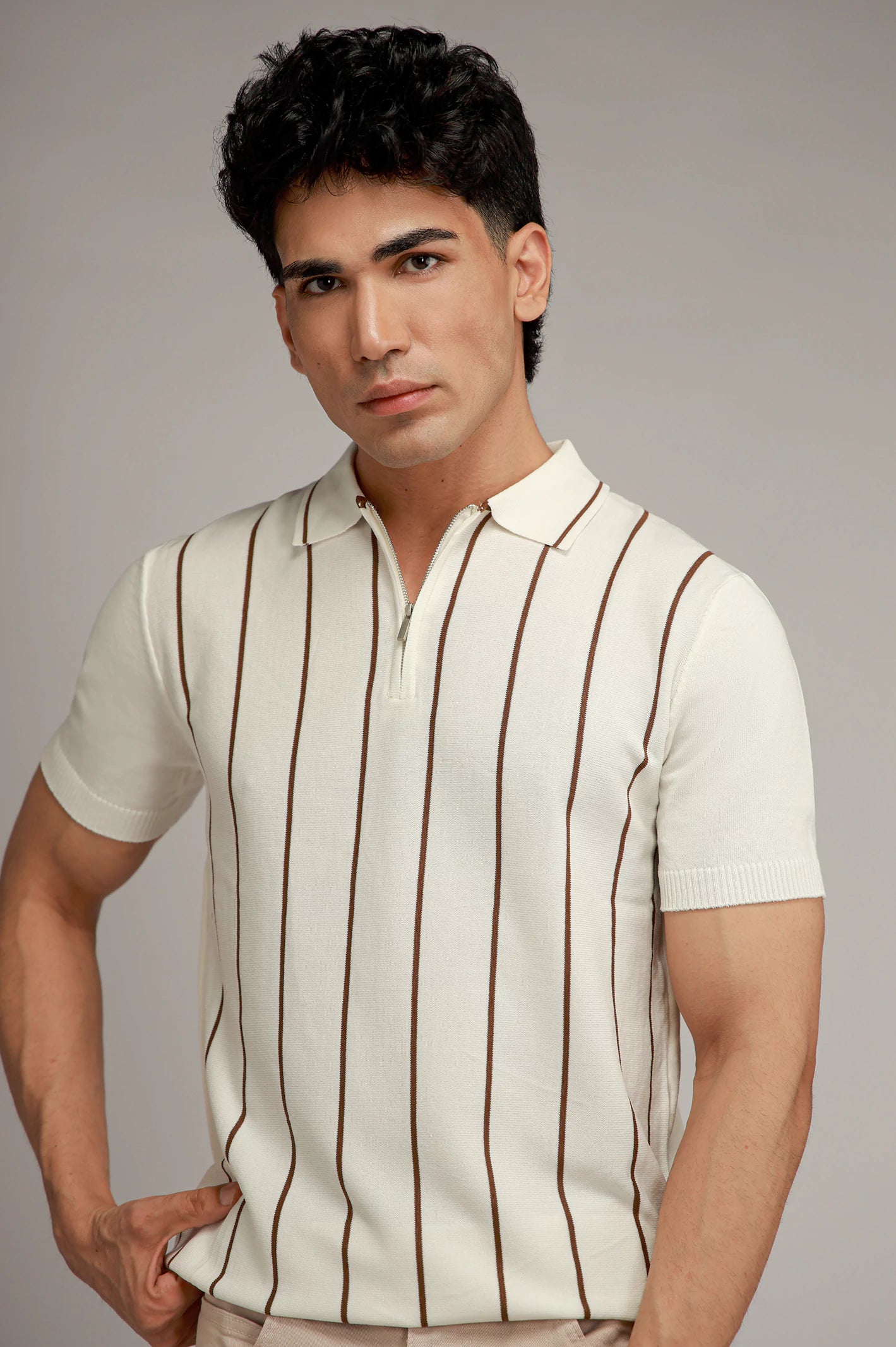 Zipper Striped Polo